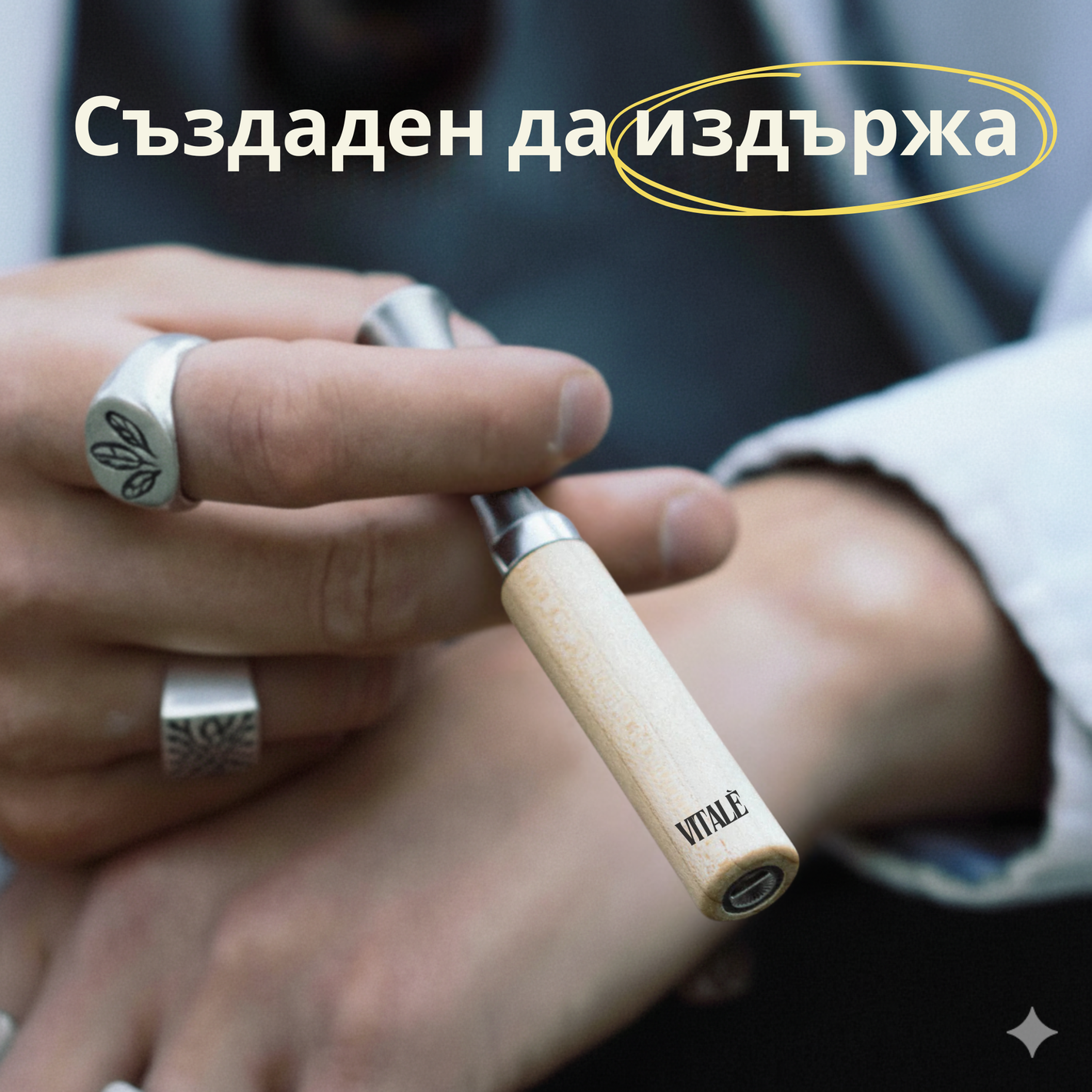 Това не е поредният никотинов заместител, електронна цигара или дъвка. VITALÈ е 100% натурален арома дифузер, който ти дава същото усещане, сякаш пушиш, но БЕЗ грам НИКОТИН и БЕЗ ДИМ. С VITALÈ продължаваш да държиш нещо в ръка, с което вдишваш дълбоко и да усещаш удовлетворение – само че вместо токсичен дим, получаваш приятен билков аромат, който успокоява ума и премахва желанието за цигара.
